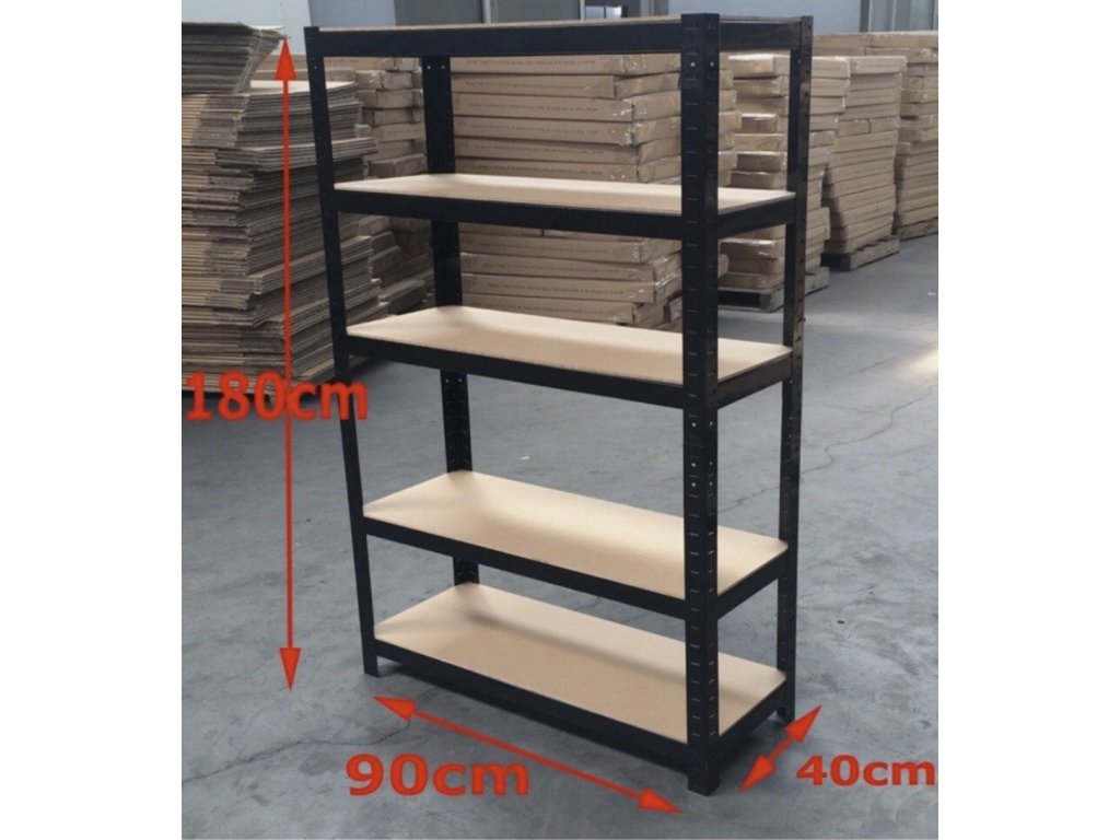 AKCE - Balíček : 2x Regál 180x90x40 cm lakovaný 5-policový, nosnost 875 kg - ČERNÝ