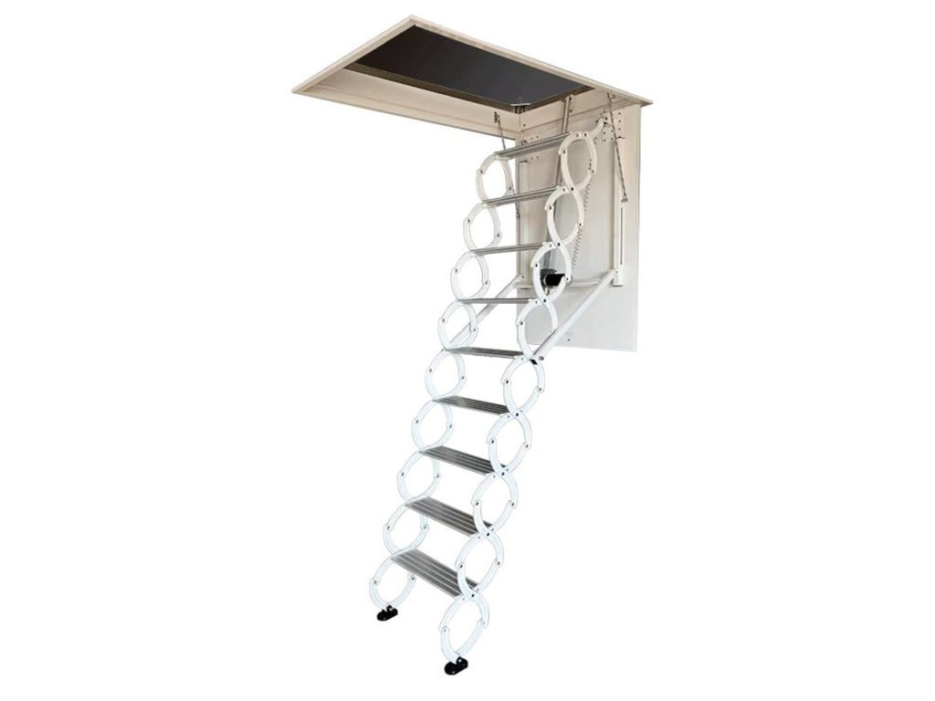 Praktické výsuvné elektrické schody slouží pro vstup do vyššího podlaží. Výhradně nemusí jít přímo o půdní prostory, schody využijete např. i pro vstup do dalšího podlaží garáže, podkrovní přístavby či dílny. Díky dálkovému ovládání je obsluha schodů velmi snadná. Za přispění elektromotoru se během několika sekund se schody rozloží a můžete je použít. Obdobně rychlé je také jejich složení do původního stavu. Schody se schovají ve stropním rámu a nepřekáží v prostoru.