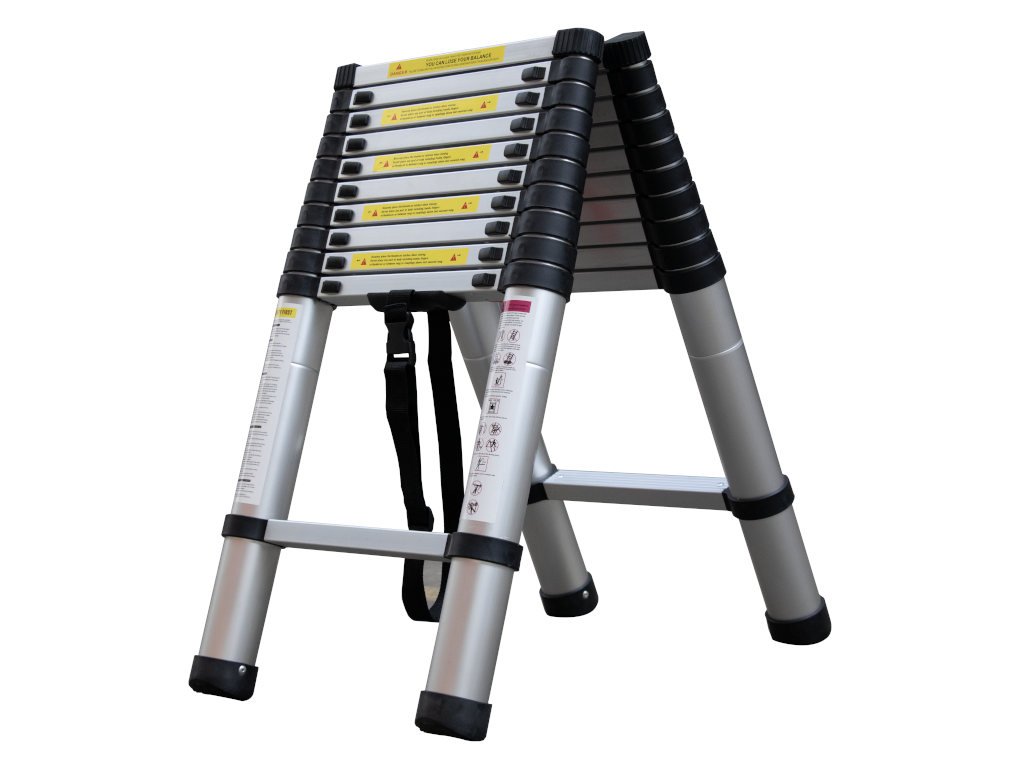 Teleskopické štafle s 2x11 stupni jsou univerzálním řešením pro dům, chatu, sklad nebo obchod. Moderní konstrukce složená z hliníkových trubek o různých průměrech umožňuje složit žebřík do neuvěřitelně malých rozměrů (balík o velikosti 84x50x20 cm). Během několika okamžiků z něj vytvoříte štafle o délce strany až 3,2 m. Vynikají především svou flexibilitou a univerzálností.