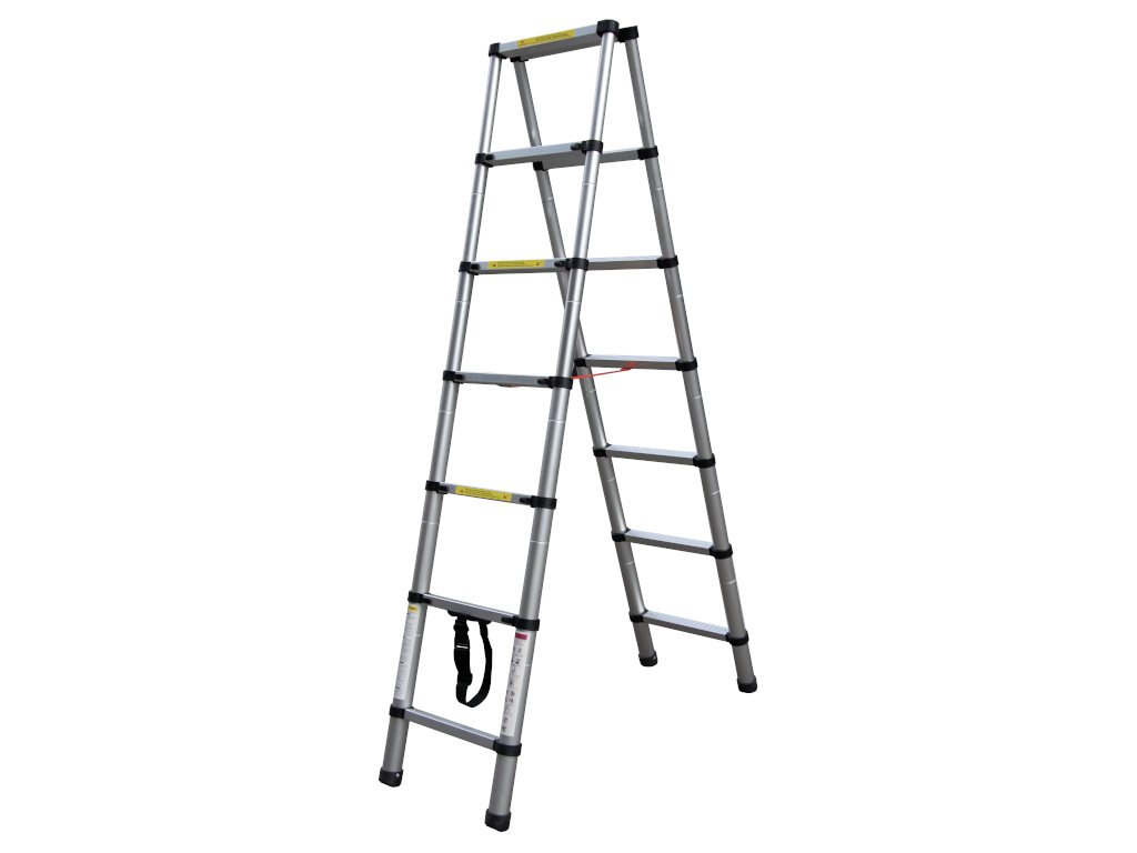 Teleskopické štafle s 2x7 stupni jsou univerzálním řešením pro dům, chatu, sklad nebo obchod. Moderní konstrukce složená z hliníkových trubek o různých průměrech umožňuje složit žebřík do neuvěřitelně malých rozměrů (balík o velikosti 68x48x14 cm). Během několika okamžiků z něj vytvoříte štafle o délce strany až 2 m. Vynikají především svou flexibilitou a univerzálností.