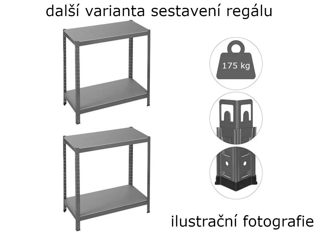 Regál standardního typu s nosností až 175 kg na polici najde využití jak v domácnosti, tak v kanceláři nebo menším skladu. Zajistí přehledné uskladnění zboží, dokumentů nebo nářadí a ušetří místo. Kvalitní materiál a bytelná konstrukce zajistí dlouhou životnost a odolnost vůči poškození. Zároveň je jeho montáž velmi snadná a sestavení regálu nezabere celé odpoledne.