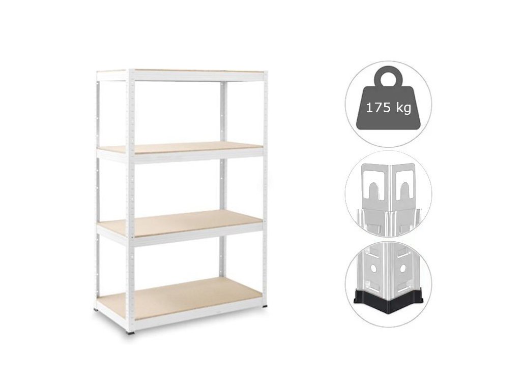 MEGA HIT: Regál 1500x700x300 mm lakovaný 4-policový, nosnost 700 kg - BÍLÝ