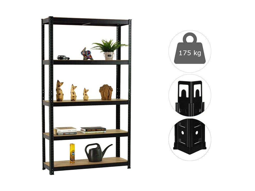 MEGA HIT: Regál 1800x900x300 mm lakovaný 5-policový, nosnost 875 kg - ČERNÝ