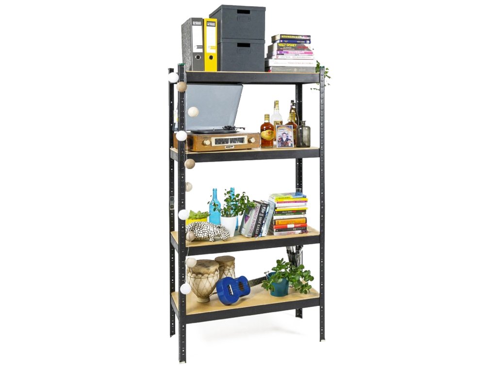 Regál 1800x900x400 mm lakovaný 4-policový, nosnost 700 kg - ČERNÝ