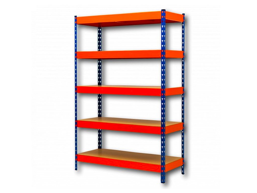 Regál 2160x1800x800 mm PROFESIONÁLNÍ lakovaný 5-policový, nosnost 2000 kg - MODRO-ORANŽOVÝ