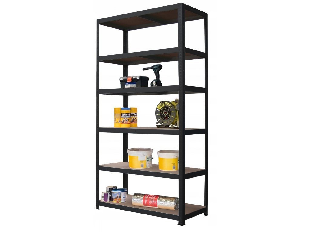 Regál 220x90x45 cm kovový lakovaný 6-policový, nosnost 1050 kg - ČERNÝ
