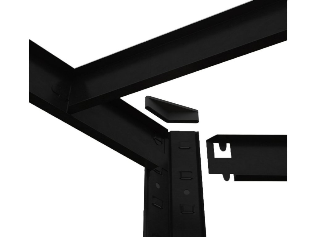 Rohový regálový systém 1800x900x400x705 mm, 1800x750x400 mm, 1800x1200x400 mm kovový lakovaný 5-policový, nosnost 2500 kg - ČERNÝ