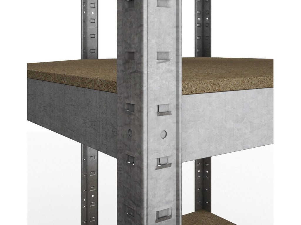 Rohový regálový systém nabízí tři regály, které je možné sešroubovat k sobě a vytvořit tak vysoce stabilní odkládací systém. Celková nosnost celého systému je 2500 kg!