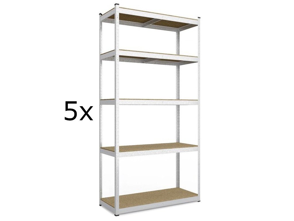 Výhodný set 5x Regál 180x90x40 cm kovový zinkovaný 5-policový, nosnost 875 kg (cena za 1 kus 898 Kč)